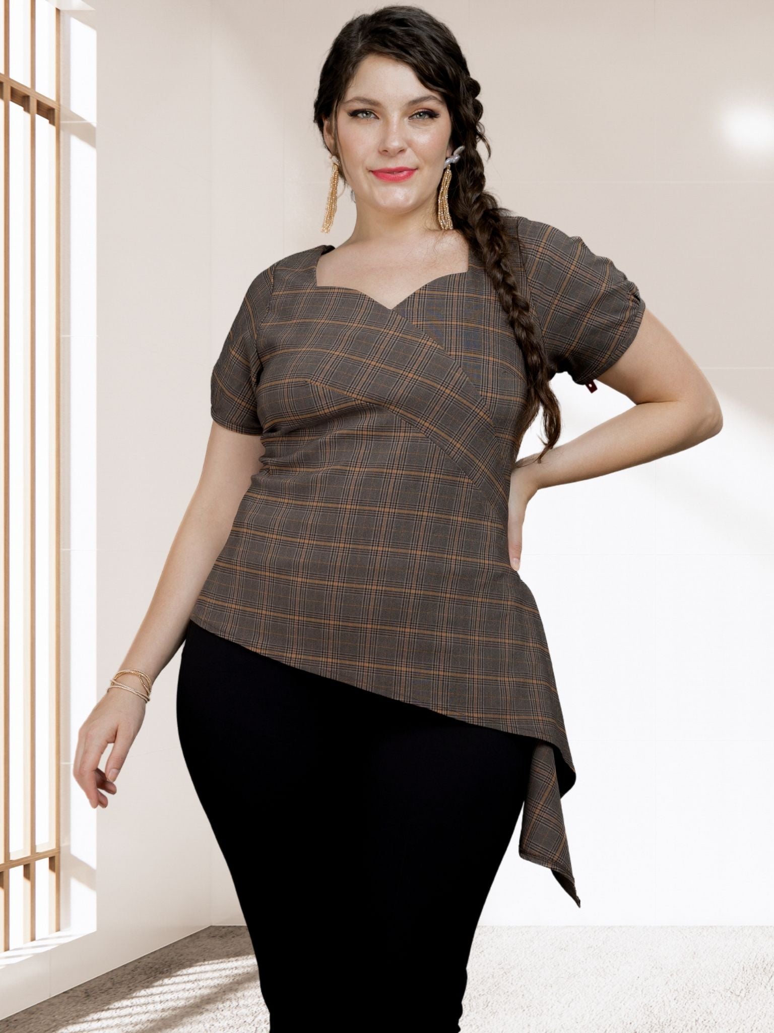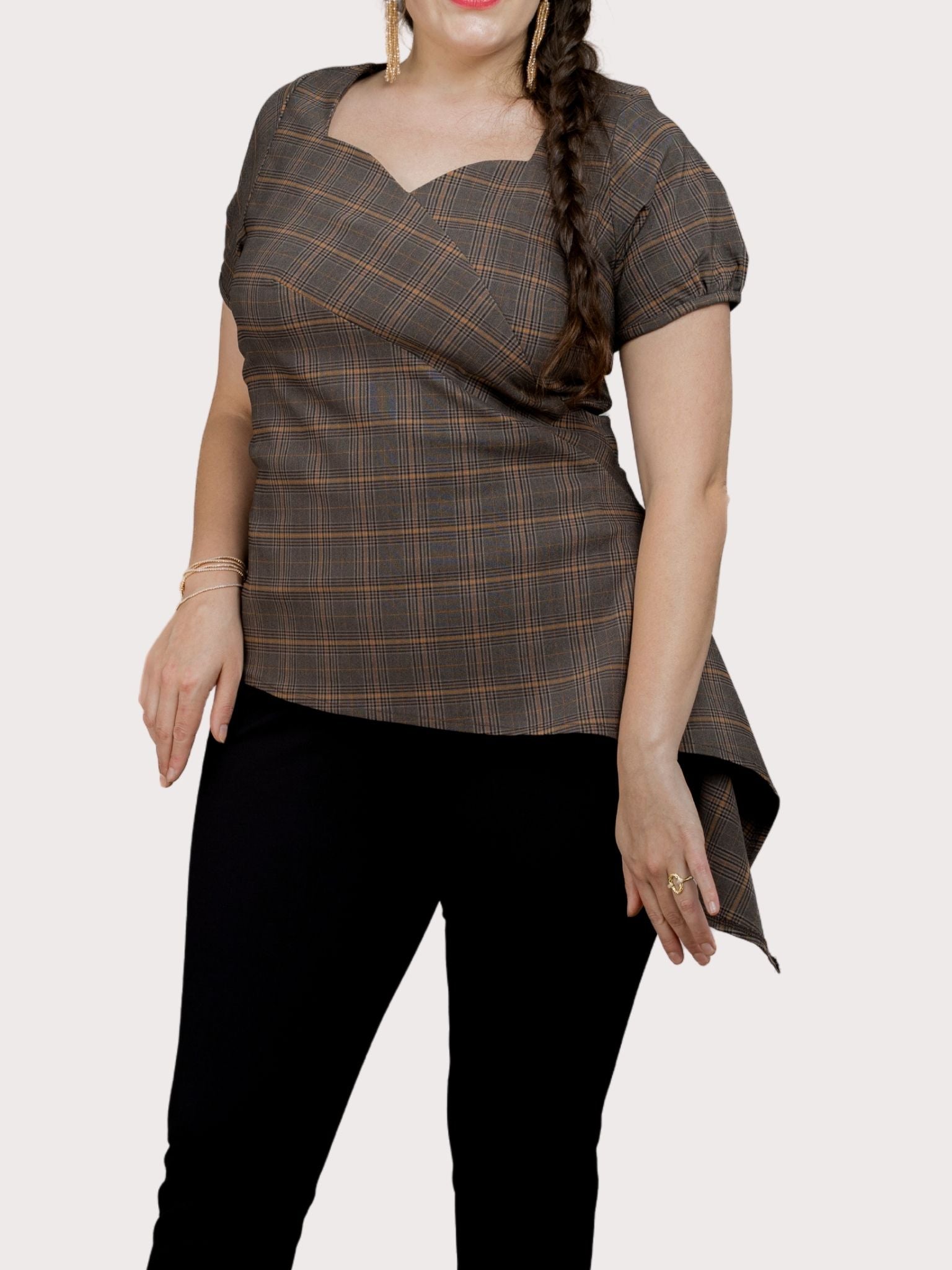 Su escote en corazón desborda sensualidad mientras que las mangas cortas le aportan impacto a tu volumen pero el detalle más icónico de este look es el corte diagonal que le da a la blusa movimiento mientras que te ayuda a marcar tu cintura, ya que acentúa tu cadera.