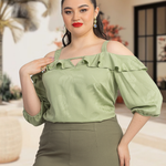 Diseño Único: Destaca por su elegante corte cold-shoulder (hombros descubiertos) y un escote sutil con tirantes que enmarcan tu rostro. 🎀